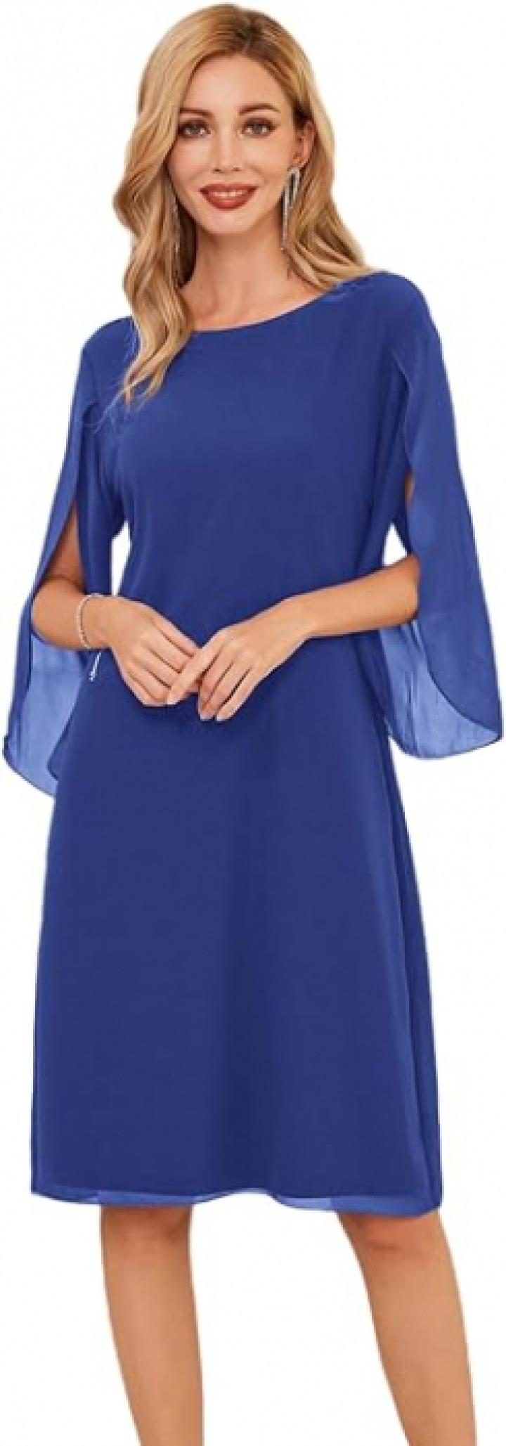 Rochie eleganta, peste genunchi, maneci 3 4, albastru inchis